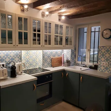 A kitchenette with coffee and tea making machines, a fridge, and oven is available as part of the accommodation's self-catering amenities. The apartment is in proximity to Luxembourg Metro train station. The apartment opens onto a terrace.